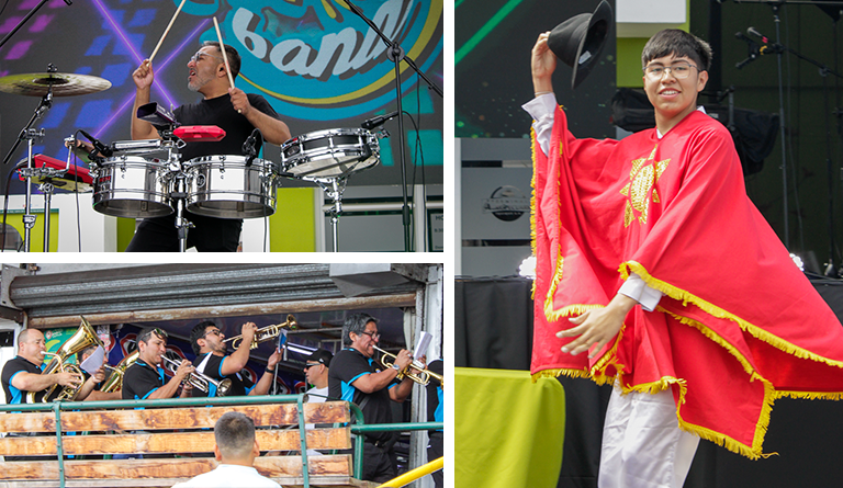 A partir de las 11:00 horas, la fiesta tomó fuerza con la presentación de Norte Kumbiera Band, agrupación que animó al público con música en vivo, baile, premios y sorteos de cajas de alimentos y regalos sorpresa. En paralelo, por distintos sectores del recinto comenzaba el recorrido del tradicional pasacalle, acompañado por la Banda de Bronces Santa Cecilia, que llenó de melodías festivas cada pasillo mientras los clientes realizaban sus compras y disfrutaban del ritmo de la agrupación Tinkus San Simón.